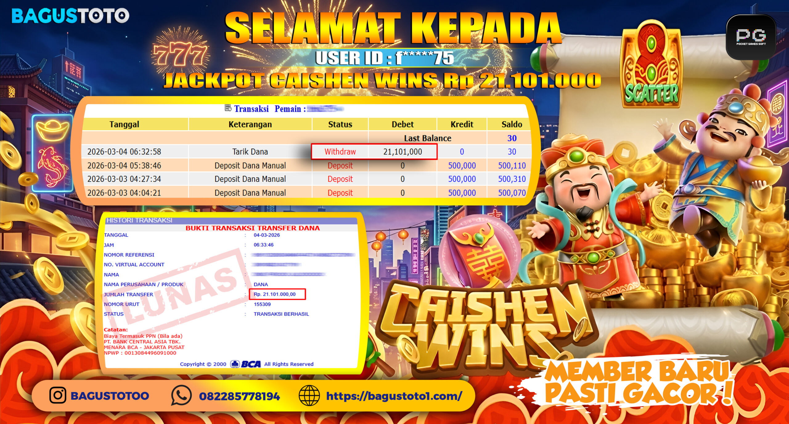 Bandar togel BAGUSTOTO merupakan bandar togel dan slot online yang membayar semua kemenangan member hingga lunas. Setiap pembayaran pada situs kami dilakukan dengan cara transfer ke rekening tujuan yang sudah di daftarkan pada situs togel online kami, Pembayaran hanya dapat di proses jika rekening yang di daftarkan telah valid dan dapat di transfer. Semua kemenangan member yang mendapatkan hadiah jackpot terbesar akan kami posting agar semua pemain dapat melihat bandar situs terpercaya BAGUSTOTO ini membayar semua kemenangan member hingga lunas. Setiap postingan yang kami posting akan kami lakukan sensor pada nomor rekening 4 digit dan nama rekening untuk menjaga privasi dan kerahasiaan member. Postingan Jackpot yang kami posting agar member atau pemain yang belum pernah bermain bisa melihat bandar togel Bukan Kaleng Kaleng Seperti BAGUSTOTO ini, Semua postingan jackpot yang kami posting dapat di lihat data keasliannya melalui nomor reff yang di tunjukan pada bank atau mbanking saat kita melakukan transfer.
