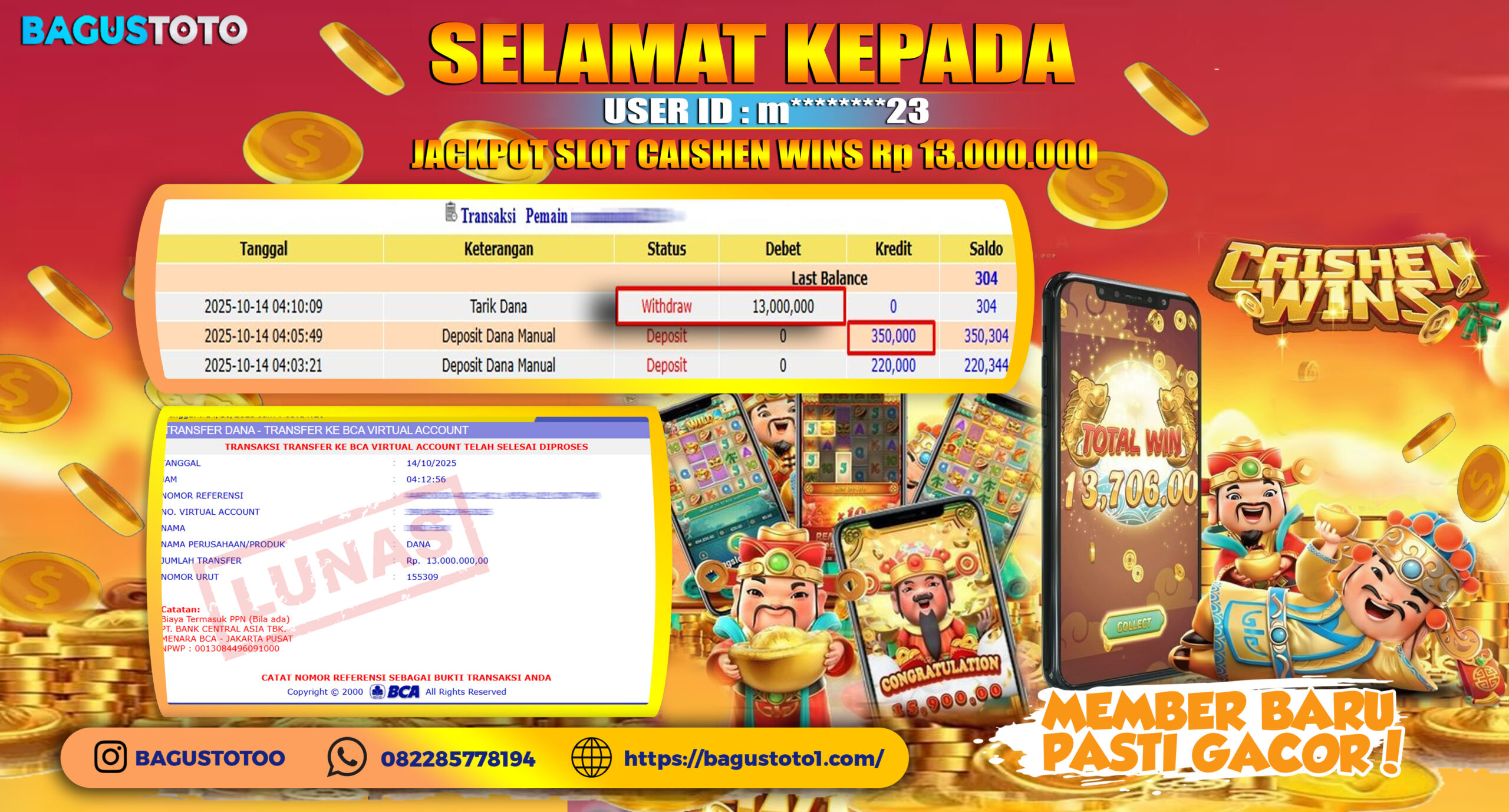 BUKTI JP SLOT CAISHEN WINS MODAL 350RB JADI 13JT!!!