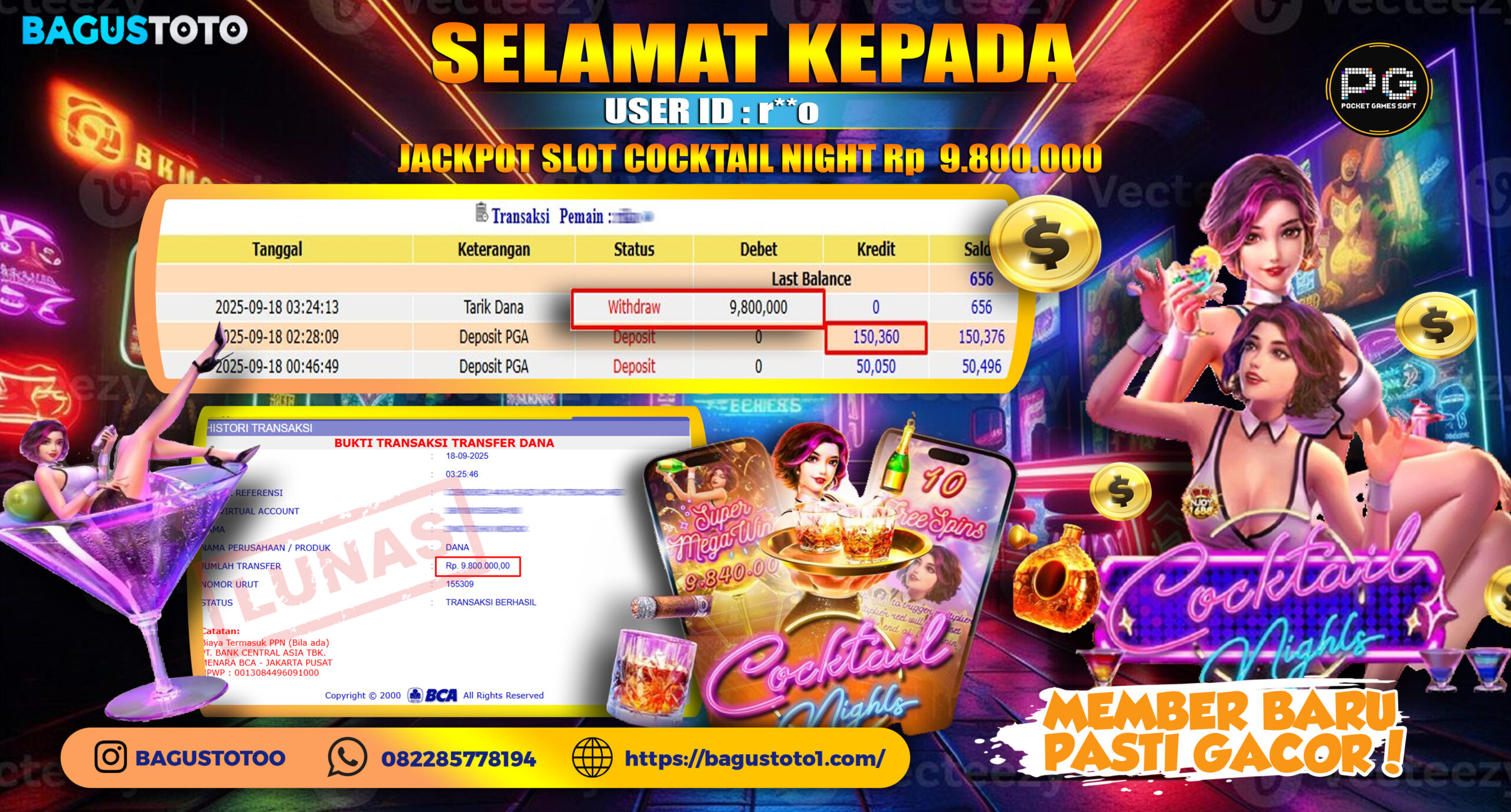BUKTI JP SLOT COCKTAIL NIGHT MODAL 150RB JADI 9.8JT!!!