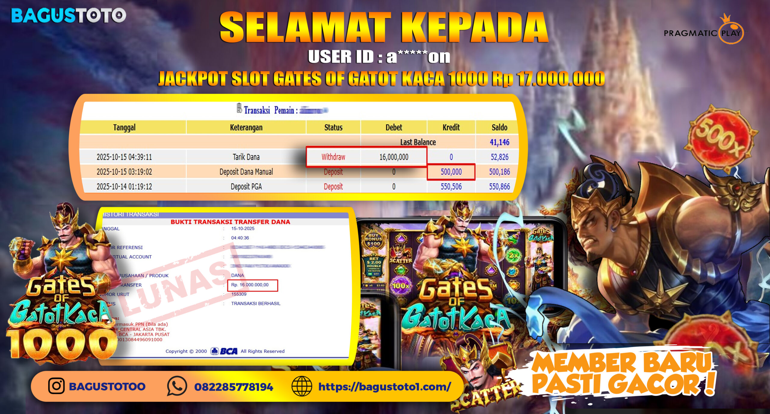 BUKTI JP SLOT GATE OF GATOT KACA 1000 MODAL 500RB JADI 16JT!!!