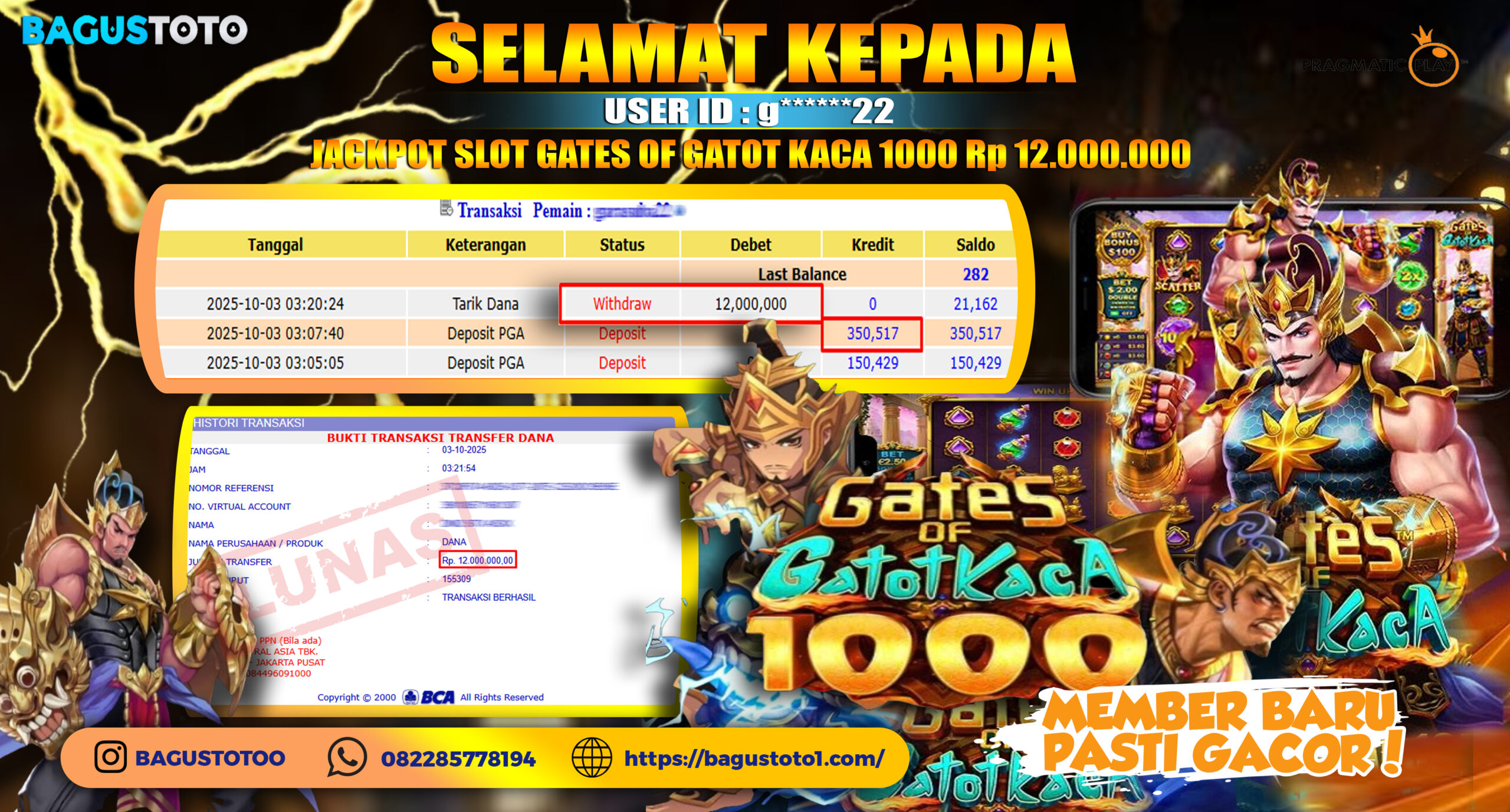 BUKTI JP SLOT GATES OF GATOT KACA 1000 MODAL 360RB JADI12JT!!!
