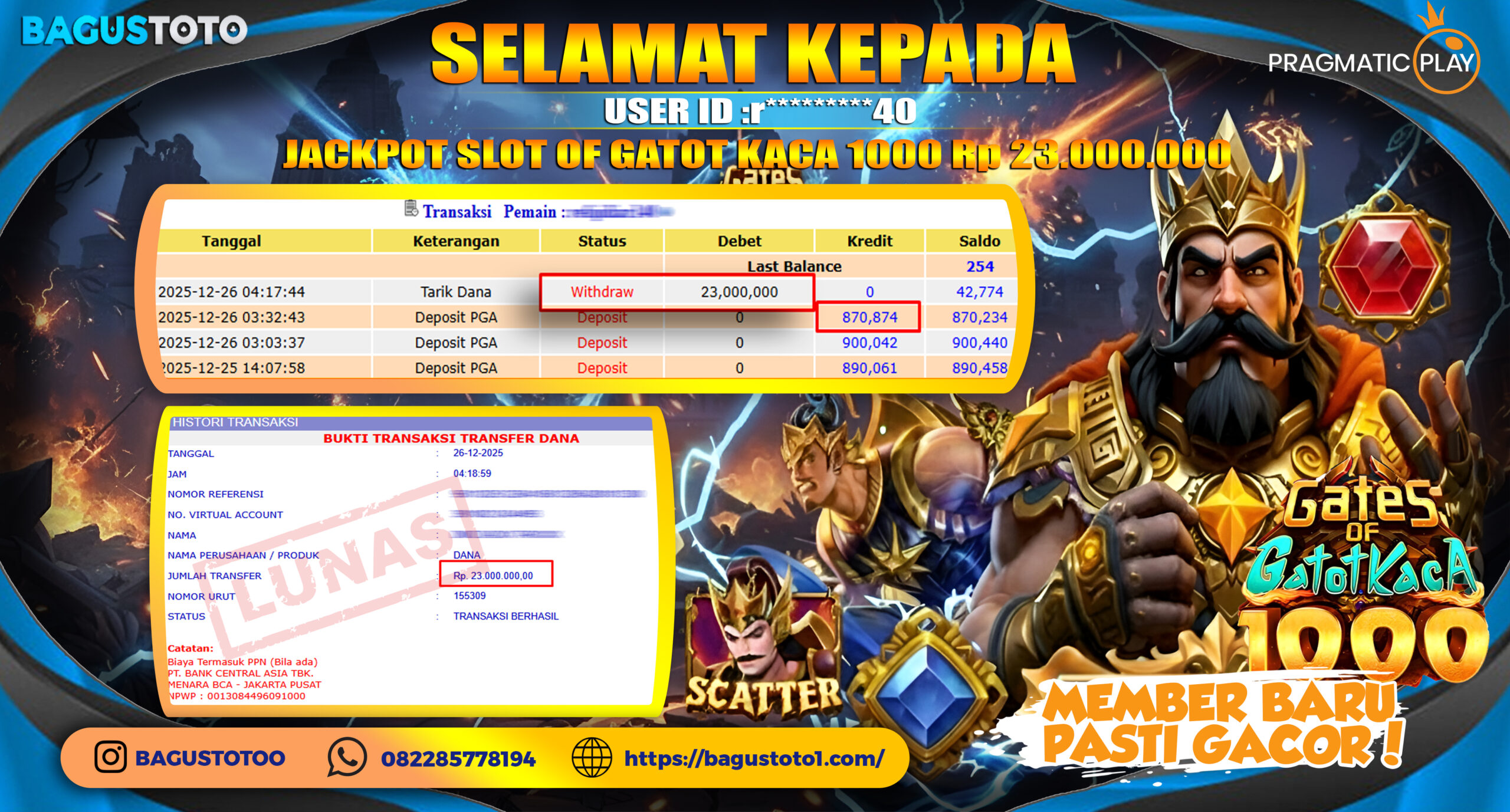 BUKTI JP SLOT GATES OF GATOT KACA 1000 MODAL 870RB JADI 23JT!!!