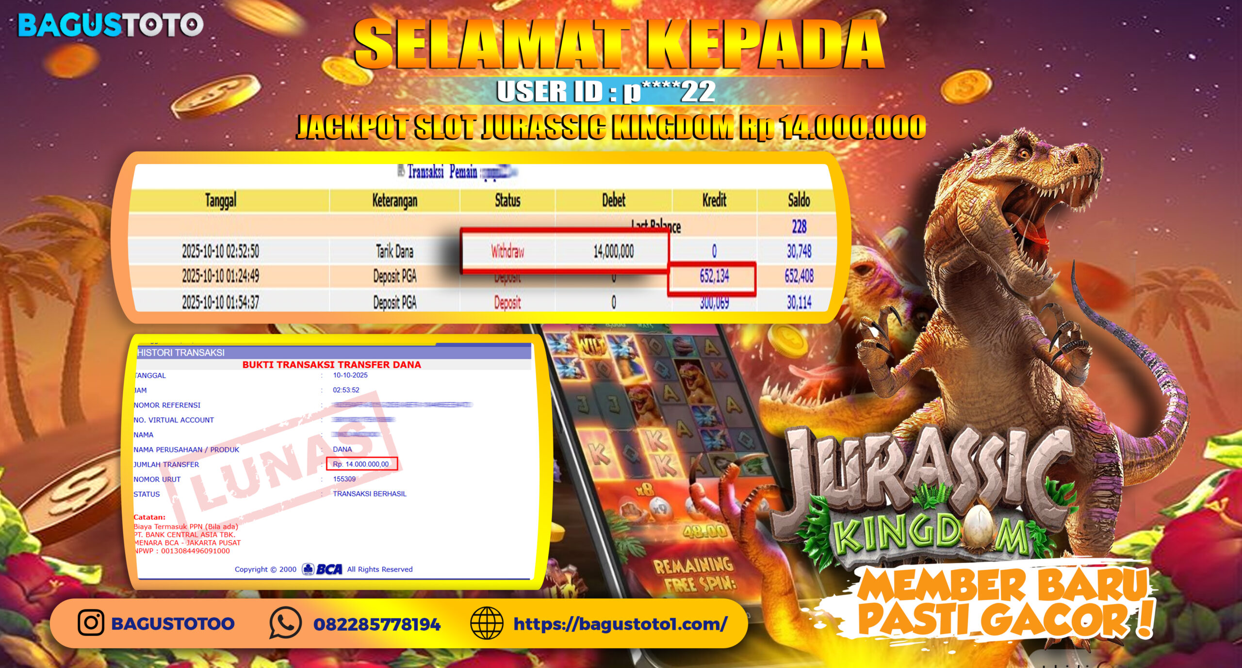 BUKTI JP SLOT JURASSIC KINGDOM MODAL 650RB JADI 14JT!!!