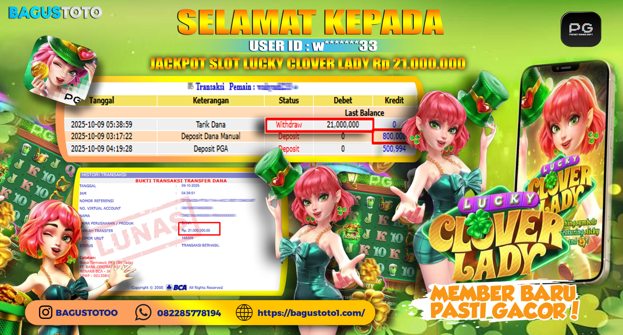 BUKTI JP SLOT LUCKY CLOVER LADY MODAL 800RB JADI 21JT!!!