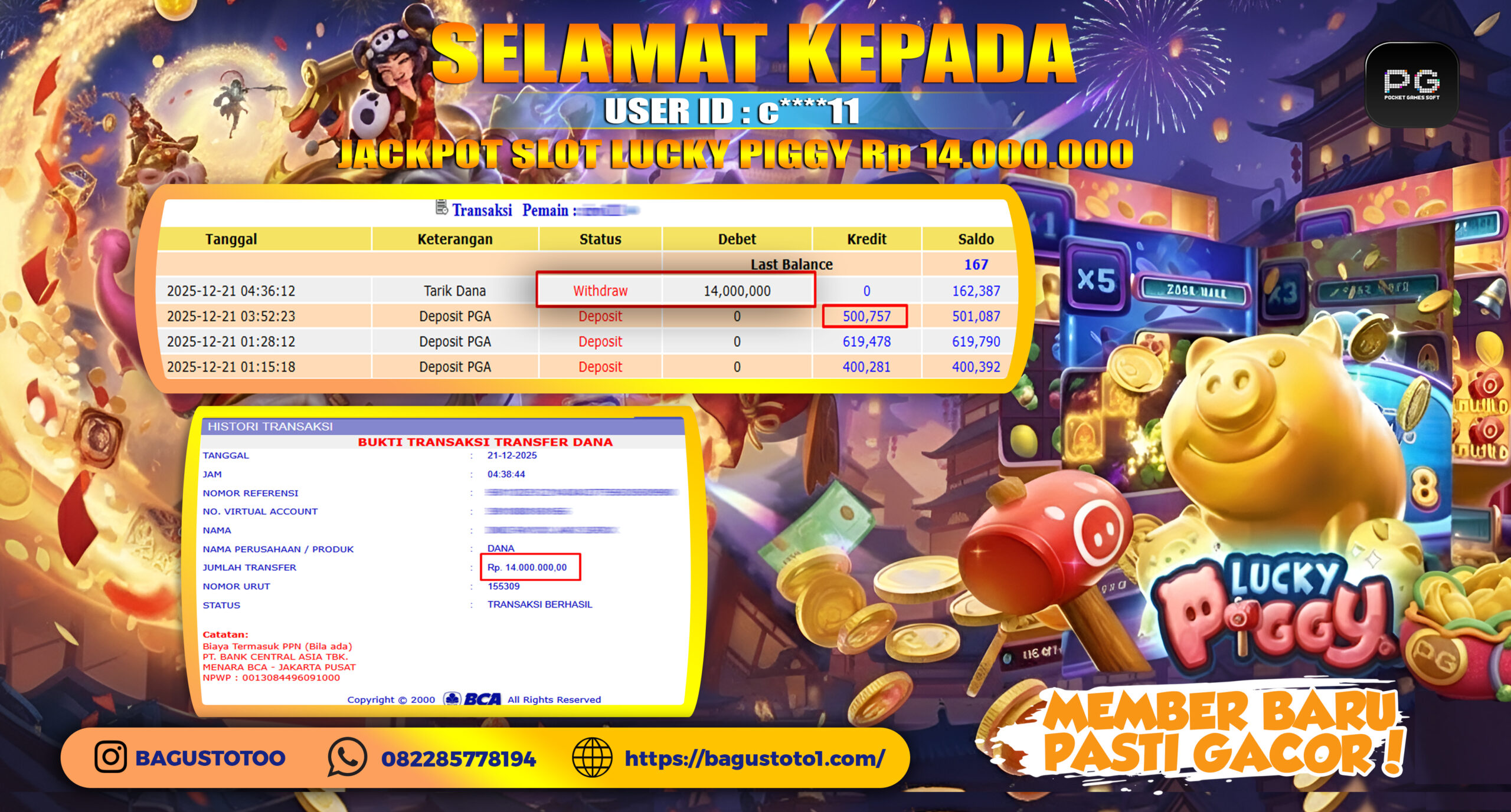 BUKTI JP SLOT LUCKY PIGGY MODAL 500RB JADI 14JT!!!