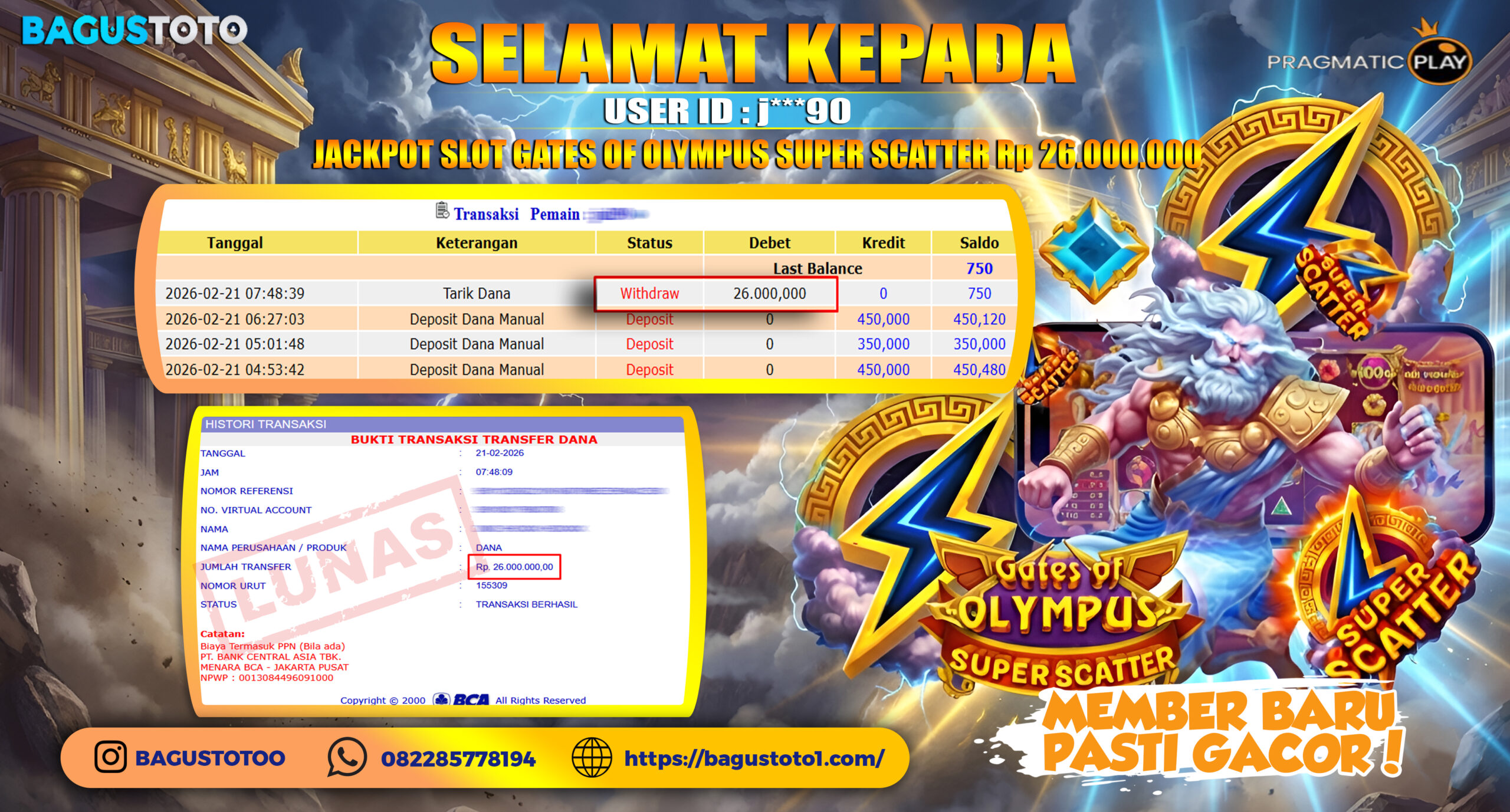 Bandar togel BAGUSTOTO merupakan bandar togel dan slot online yang membayar semua kemenangan member hingga lunas. Setiap pembayaran pada situs kami dilakukan dengan cara transfer ke rekening tujuan yang sudah di daftarkan pada situs togel online kami, Pembayaran hanya dapat di proses jika rekening yang di daftarkan telah valid dan dapat di transfer. Semua kemenangan member yang mendapatkan hadiah jackpot terbesar akan kami posting agar semua pemain dapat melihat bandar situs terpercaya BAGUSTOTO ini membayar semua kemenangan member hingga lunas. Setiap postingan yang kami posting akan kami lakukan sensor pada nomor rekening 4 digit dan nama rekening untuk menjaga privasi dan kerahasiaan member. Postingan Jackpot yang kami posting agar member atau pemain yang belum pernah bermain bisa melihat bandar togel Bukan Kaleng Kaleng Seperti BAGUSTOTO ini, Semua postingan jackpot yang kami posting dapat di lihat data keasliannya melalui nomor reff yang di tunjukan pada bank atau mbanking saat kita melakukan transfer.