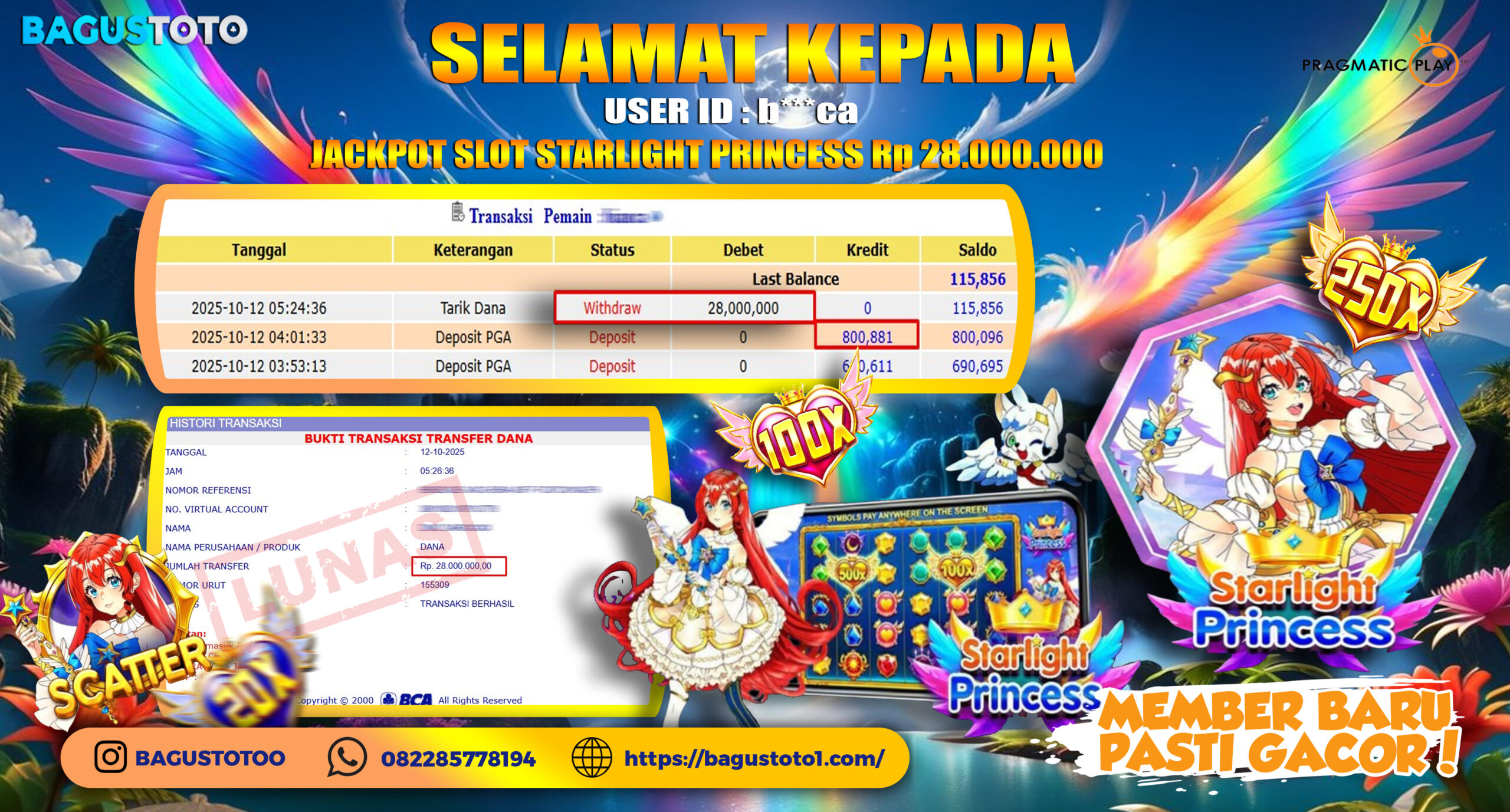 BUKTI JP SLOT STARLIGHT PRINCESS MODAL 800RB JADI 28JT!!!