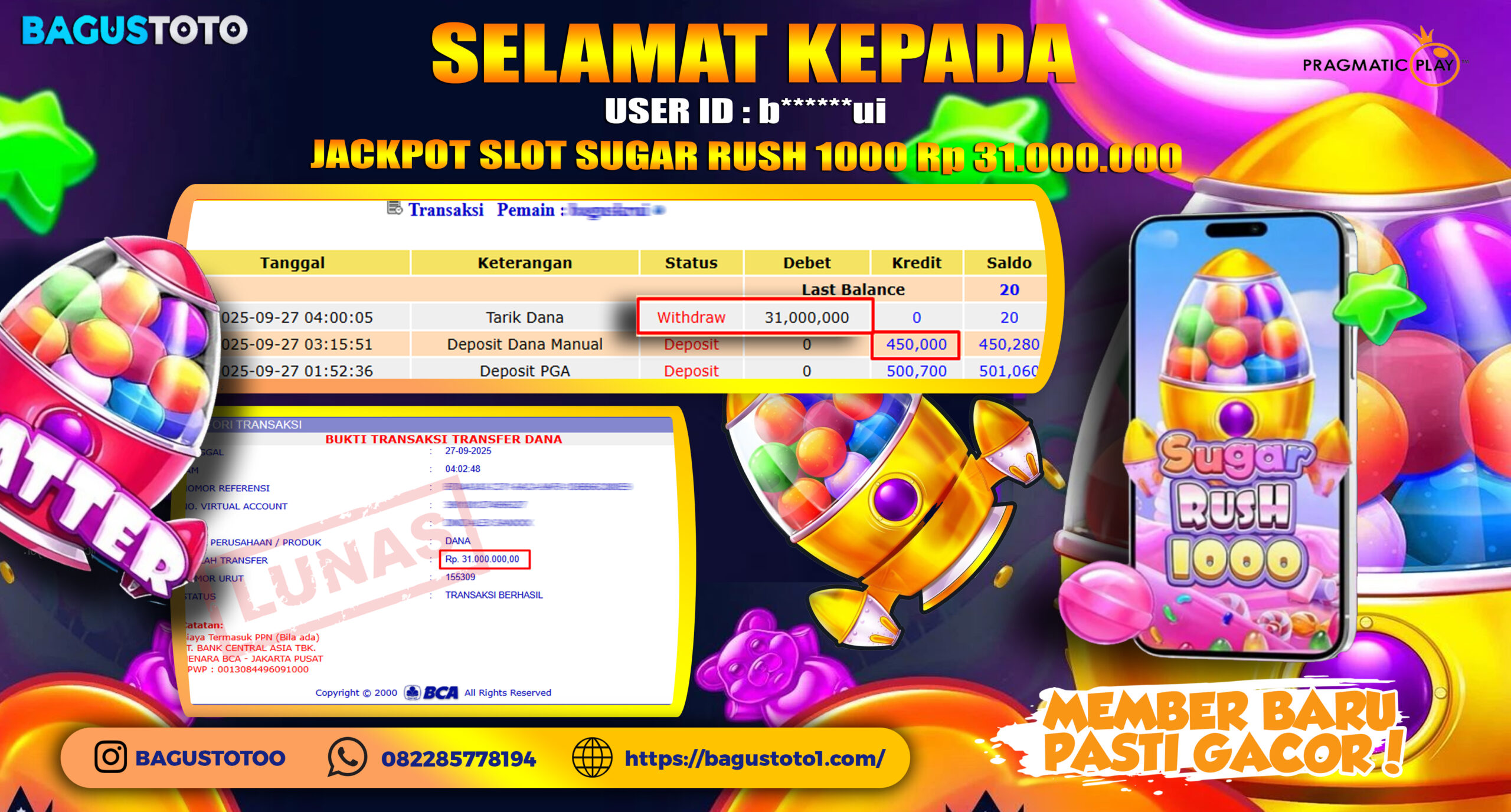 BUKTI JP SLOT SUGAR RUSH 1000 MODAL 450RB JADI 31JT!!!