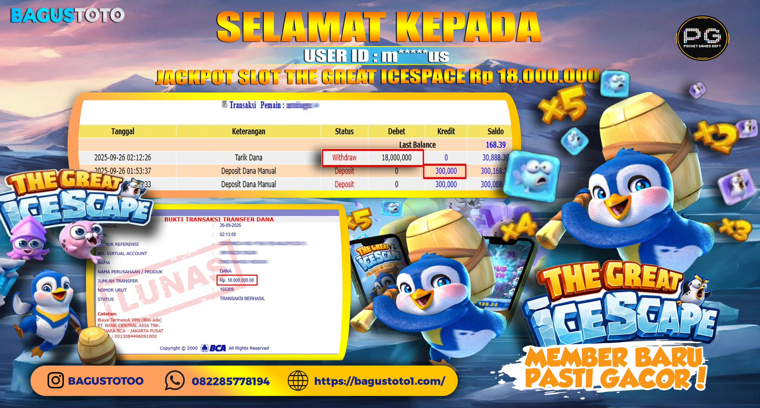 BUKTI JP SLOT THE GREAT ICESCAPE MODAL 300RB JADI 18JT!!!