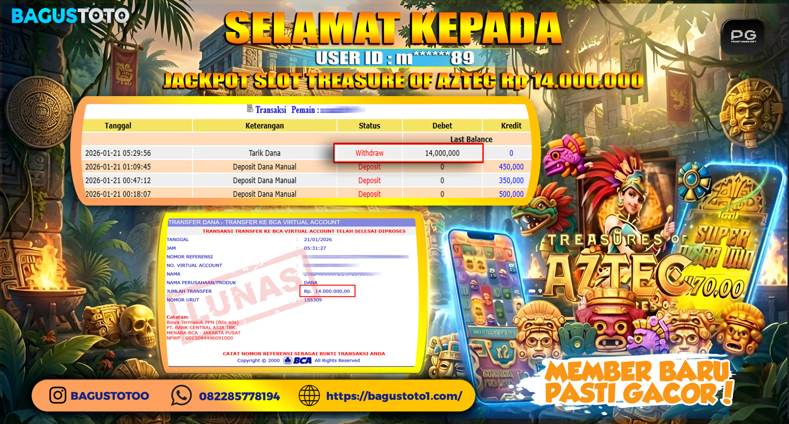 BUKTI JP SLOT TREASURE OF AZTEC MODAL 450RB JADI 14JT!!!
