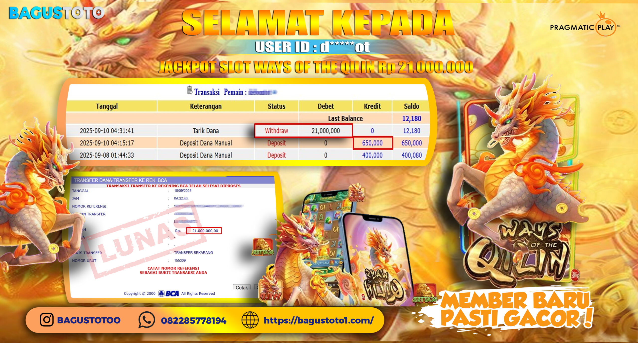 BUKTI JP SLOT WAYS OF THE QILIN MODAL 650RB JADI 21JT!!!