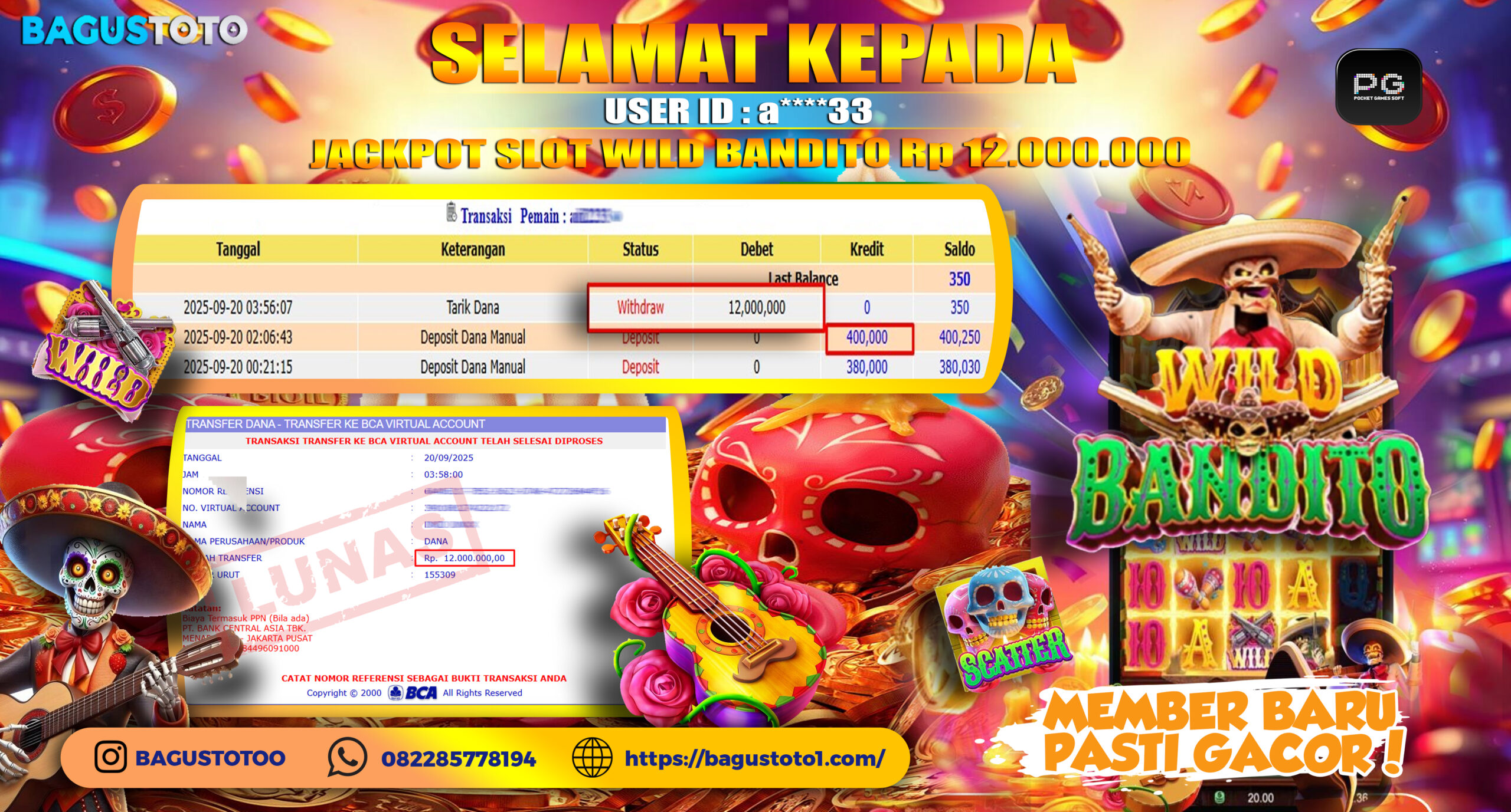 BUKTI JP SLOT WILD BANDITO MODAL 400RB JADI 12JT!!!